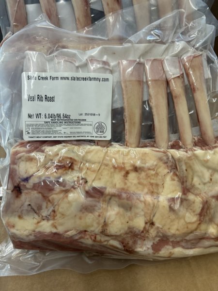 This is a show stopper veal roast coming from the rib section. The bones have been frenched and the chine bone...